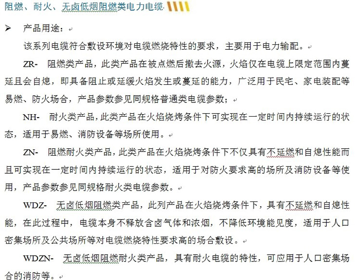 阻燃、耐火、无卤低烟阻燃类