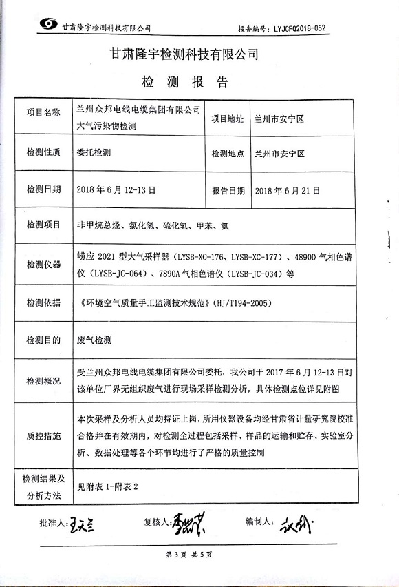 众邦电线电缆集团有限公司2018第二季度环境